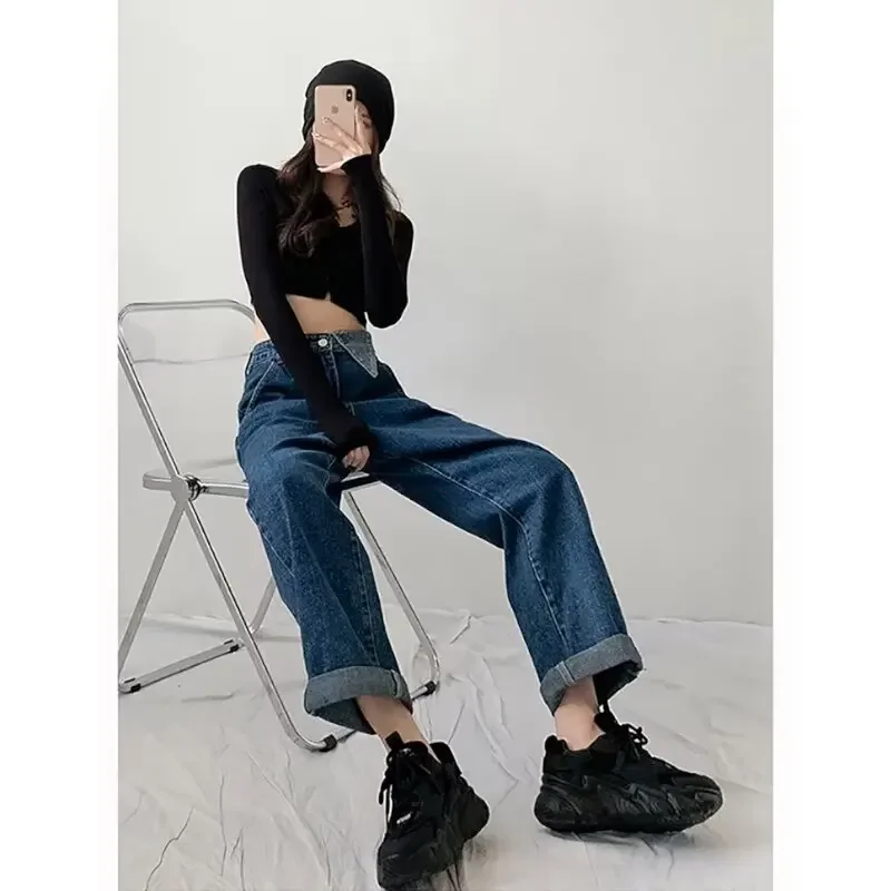 Vintage Style Black Jeans Women's Loose Fit