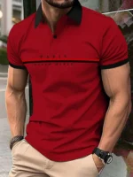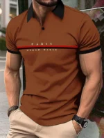 Fashion Men 3D Printed Solid Color Polo Shirt