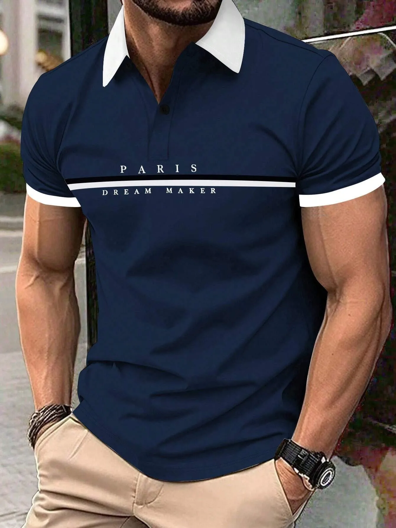 Men’s Polo Shirt Button Collar Short-Sleeved