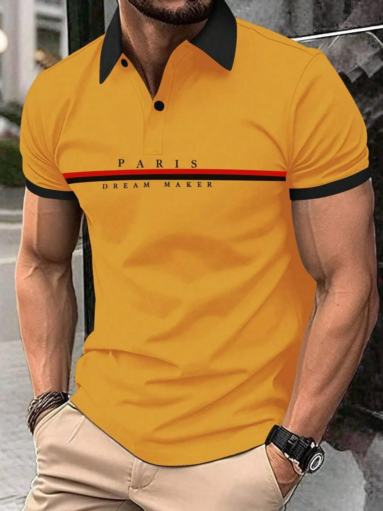 Fashion Men 3D Printed Solid Color Polo Shirt